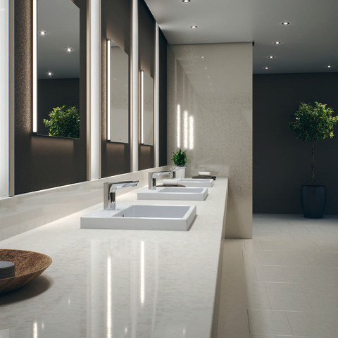 Waschtischmischer elektronisch, Batterie, n/a Wassertemperatur voreinstellbar, Standmontage, Ausladung 122 mm, flexible Anschlussschläuche 3/8", DN 15, Normalstrahl, Temperaturbegrenzung einstellbar, geeignet für Durchlauferhitzer, Anzahl Griffe 0