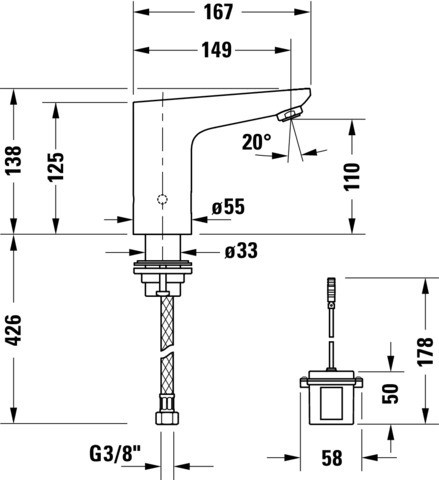 Duravit Infrarot-Waschtisch-Armatur Sensor 1 Batterie, Ausladung 122mm, chrom