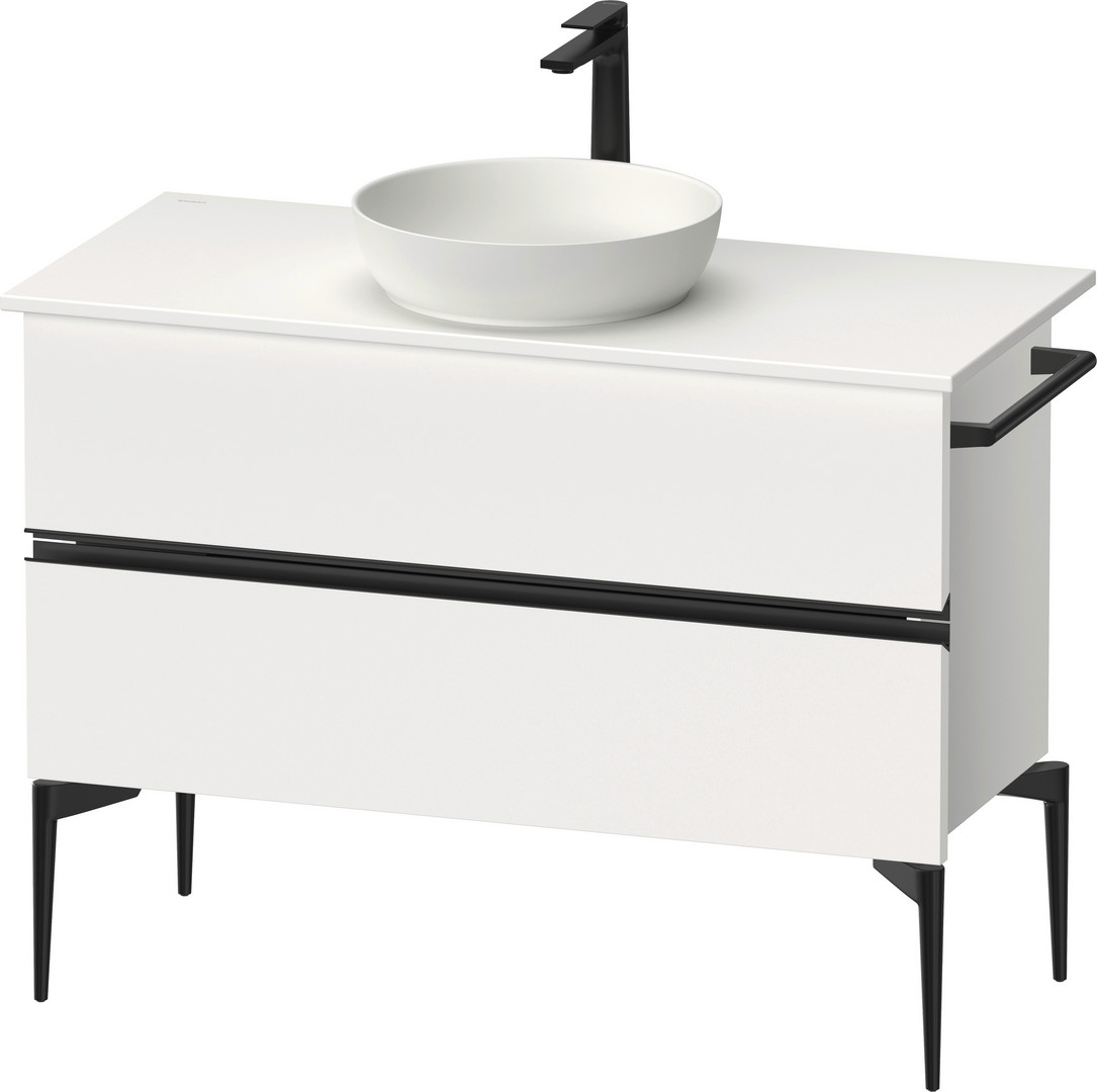 Duravit Konsolenwaschtischunterbau bodenstehend Sivida 104,5 x 54,8 x 47,5 cm, Weiß Matt, 2 Schubkästen, Griff diamantschwarz