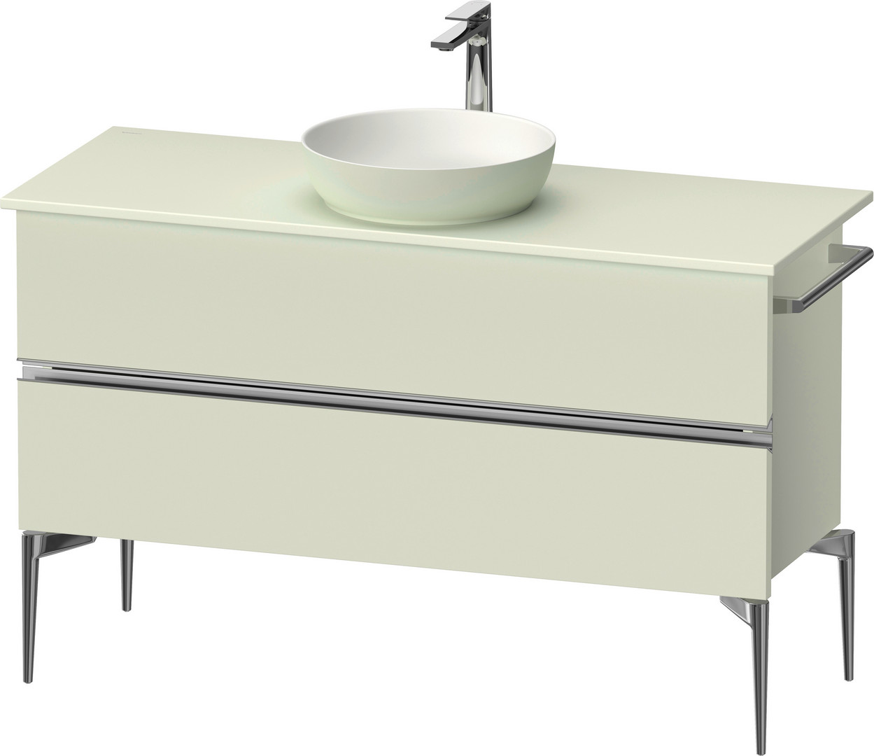 Duravit Konsolenwaschtischunterbau bodenstehend Sivida 124,5 x 54,8 x 47,5 cm, Blassgrün Matt, 2 Schubkästen, Griff chrom