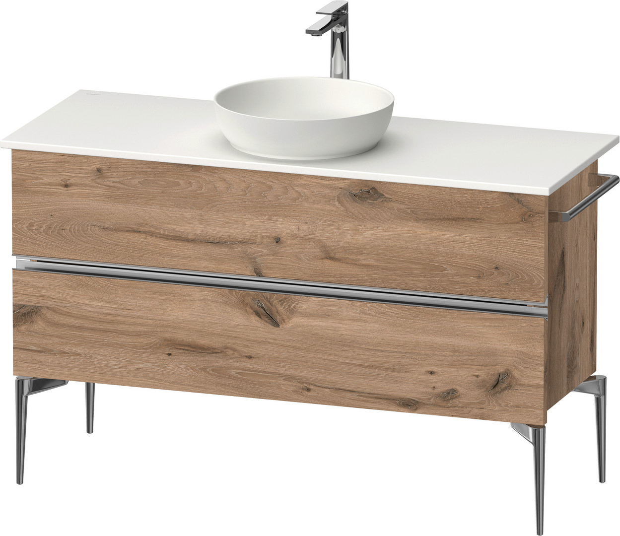 Duravit Konsolenwaschtischunterbau bodenstehend Sivida 124,5 x 54,8 x 47,5 cm, Eiche Marmorie, 2 Schubkästen, Griff chrom