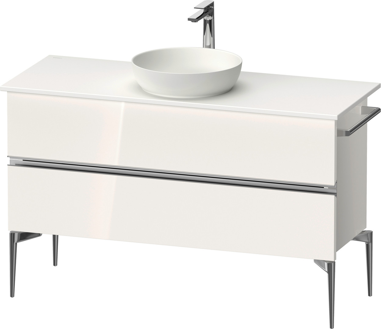 Duravit Konsolenwaschtischunterbau bodenstehend Sivida 124,5 x 54,8 x 47,5 cm, Weiß Hochglanz, 2 Schubkästen, Griff chrom