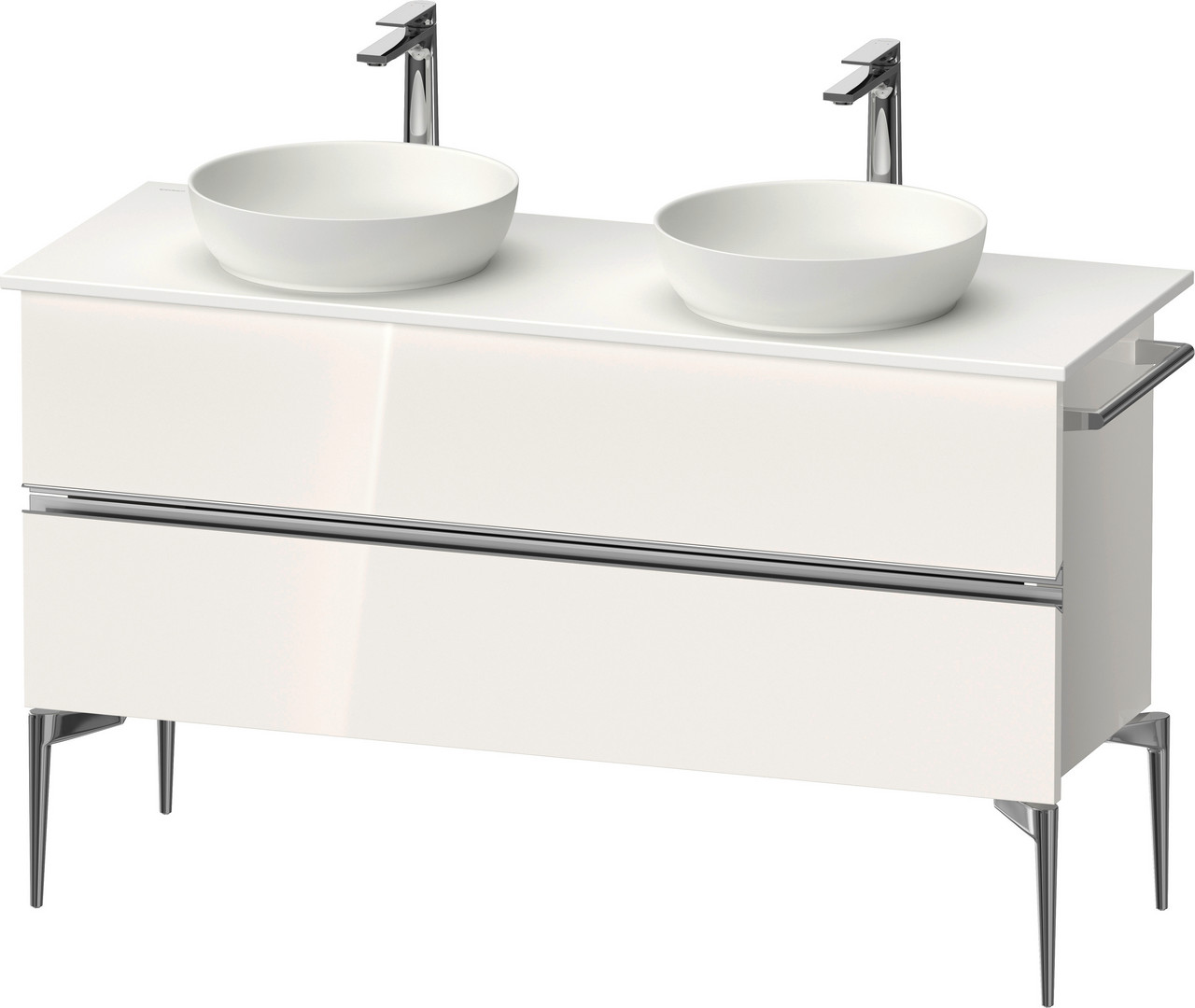 Duravit Konsolenwaschtischunterbau bodenstehend Sivida Weiß Hochglanz, 131,5x54,8x47,5cm, 2 Schubkästen, Griff chrom
