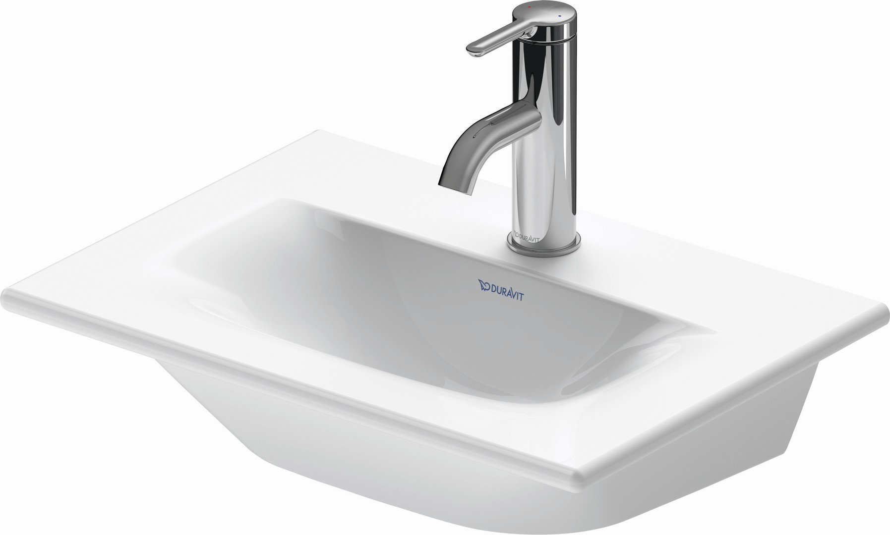 Duravit Möbel-Handwaschbecken Viu 45x32cm, ohne Überlauf, mit Hahnlochbank, mit Hahnloch, weiß