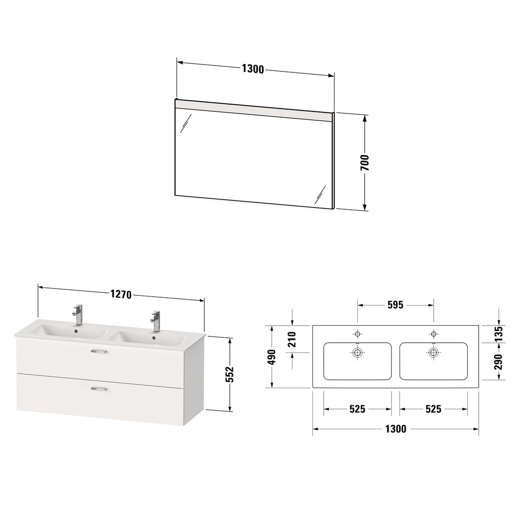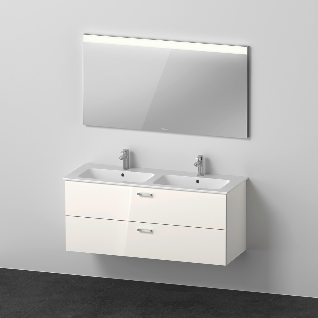 Duravit Möbel-Set XBase 130x49cm, WT, WTU 2 Hahnlöcher/Schubkästen, Spiegel, weiß glänzend DUXB007404545