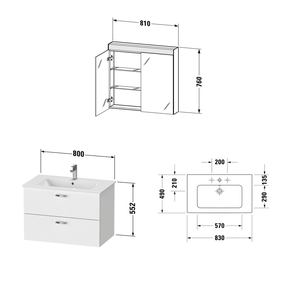 Duravit Möbel-Set XBase 83x49cm, WT, WTU 2 Schubkästen, Spiegelschrank, weiß glänzend DUXB007604545