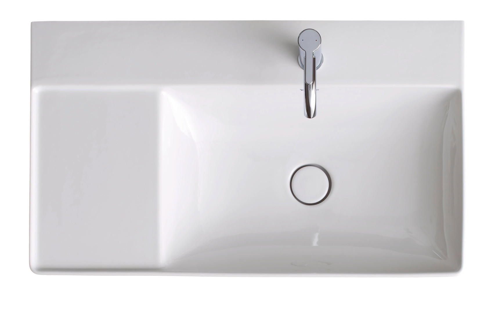 Duravit Möbel-Waschtisch asymmetrisch geschliffen DuraSquare 80x47cm, ohne Überlauf, mit Hahnlochbank, Becken rechts, 1 Hahnloch, weiß