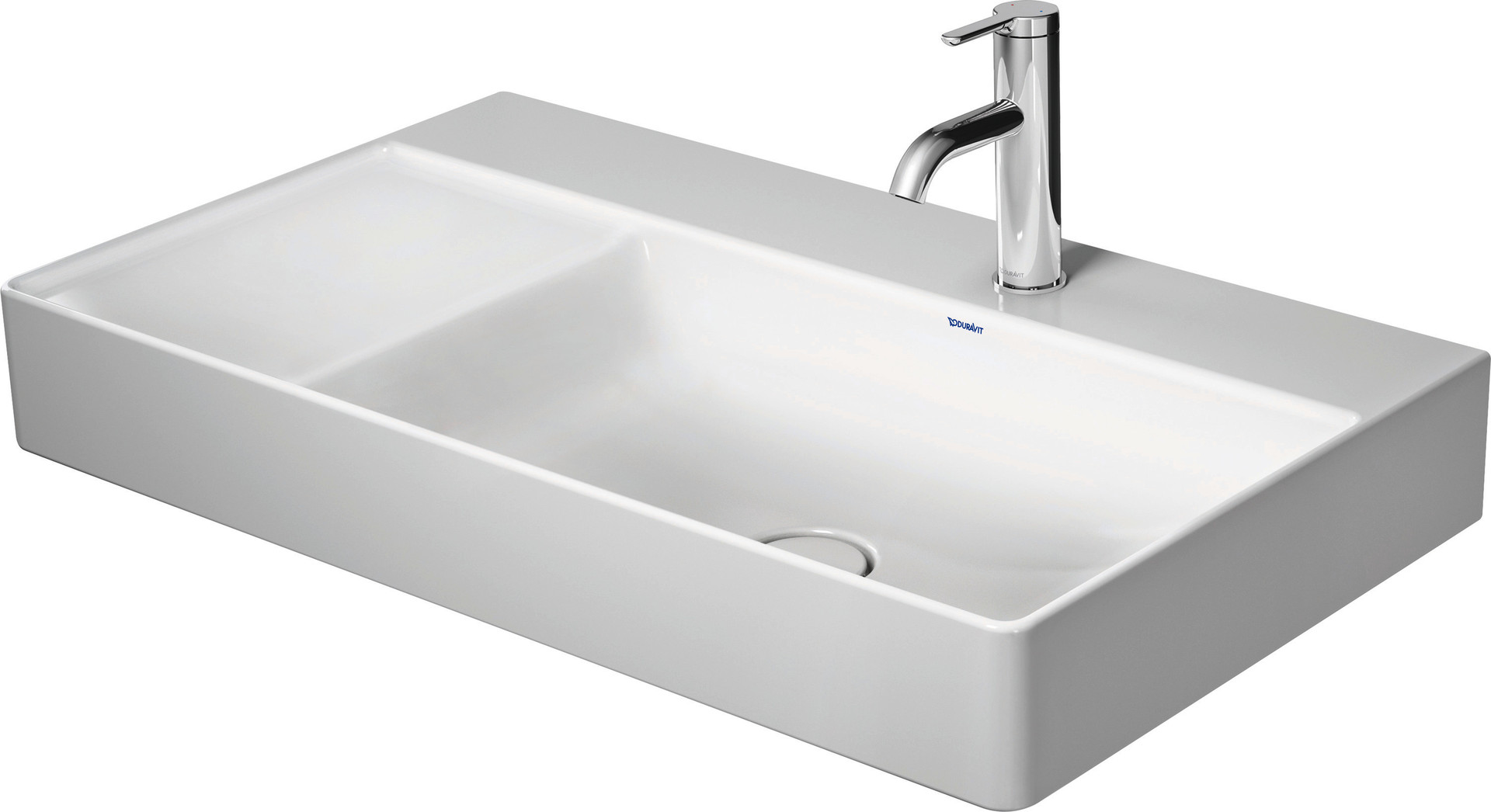 Duravit Möbel-Waschtisch asymmetrisch geschliffen DuraSquare 80x47cm, ohne Überlauf, mit Hahnlochbank, Becken rechts, ohne Hahnloch, weiß