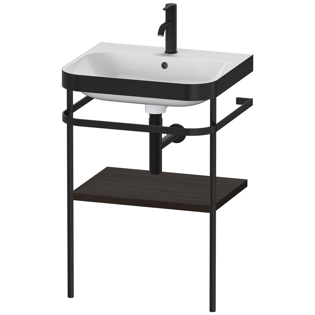 Duravit Möbelwaschtisch-Kombination Happy D.2 Plus 57,5 x 49 cm, 1 Hahnloch, nussbaum gebürstet, mit Metallkonsole