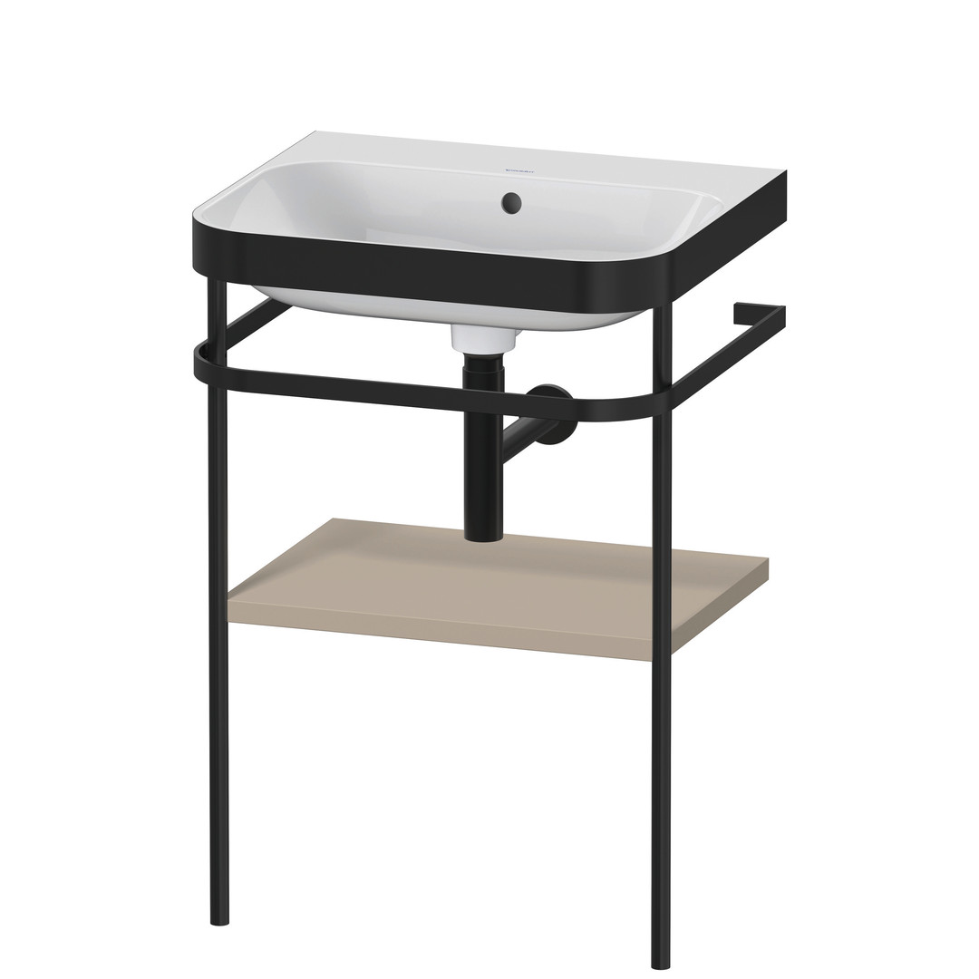 Duravit Möbelwaschtisch-Kombination Happy D.2 Plus 57,5 x 49 cm, ohne Hahnloch, taupe seidenmatt, mit Metallkonsole