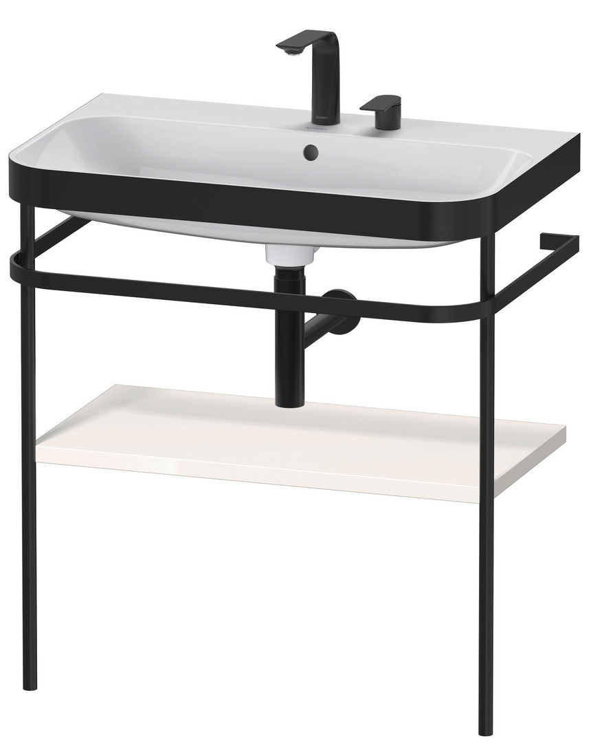 Duravit Möbelwaschtisch-Kombination Happy D.2 Plus 77,5 x 49 cm, 2 Hahnlöcher, weiß hochglanz, mit Metallkonsole