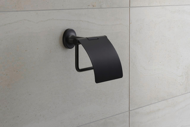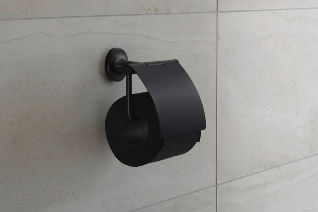 Duravit Papierrollenhalter Starck T 12,5x8,3cm, mit Deckel, schwarz matt