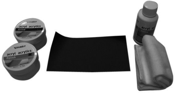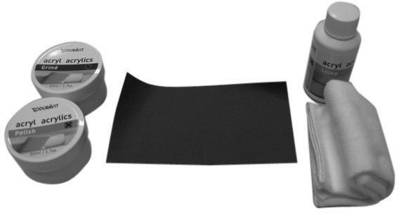 zur Beseitigung von Kratzern und anderen oberflächlichen Beschädigungen, bestehend aus Acrylpflege, Acrylharz, Harter, Schleifpaste, Polierpaste