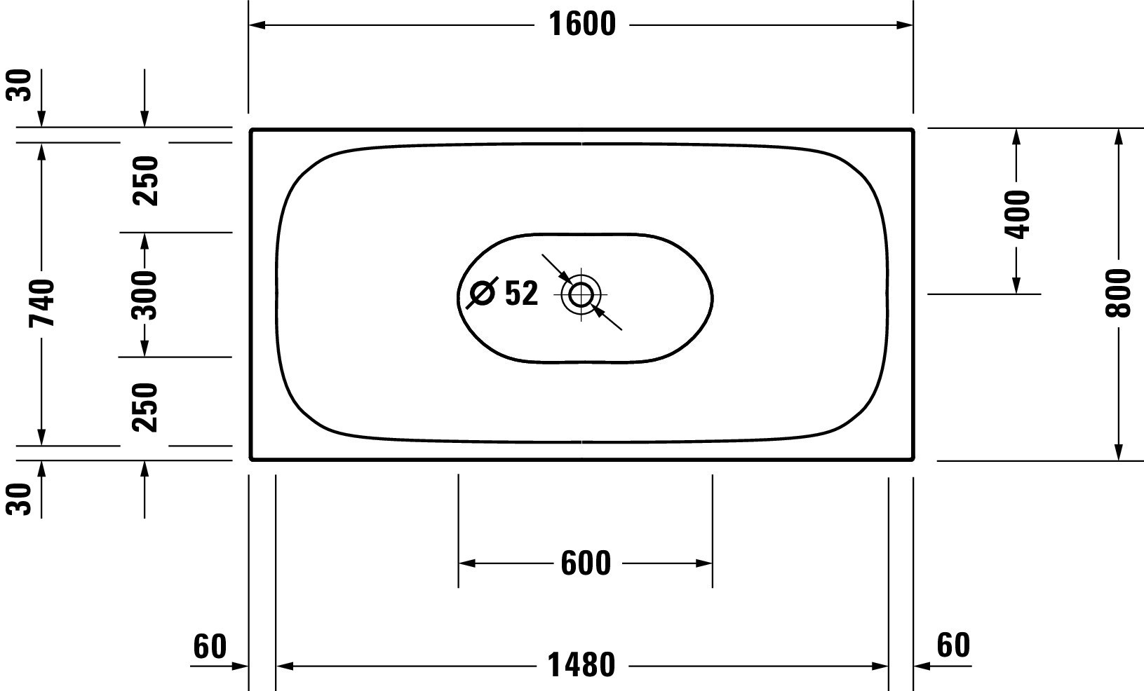 Durchmesser Ablaufloch 52 mm