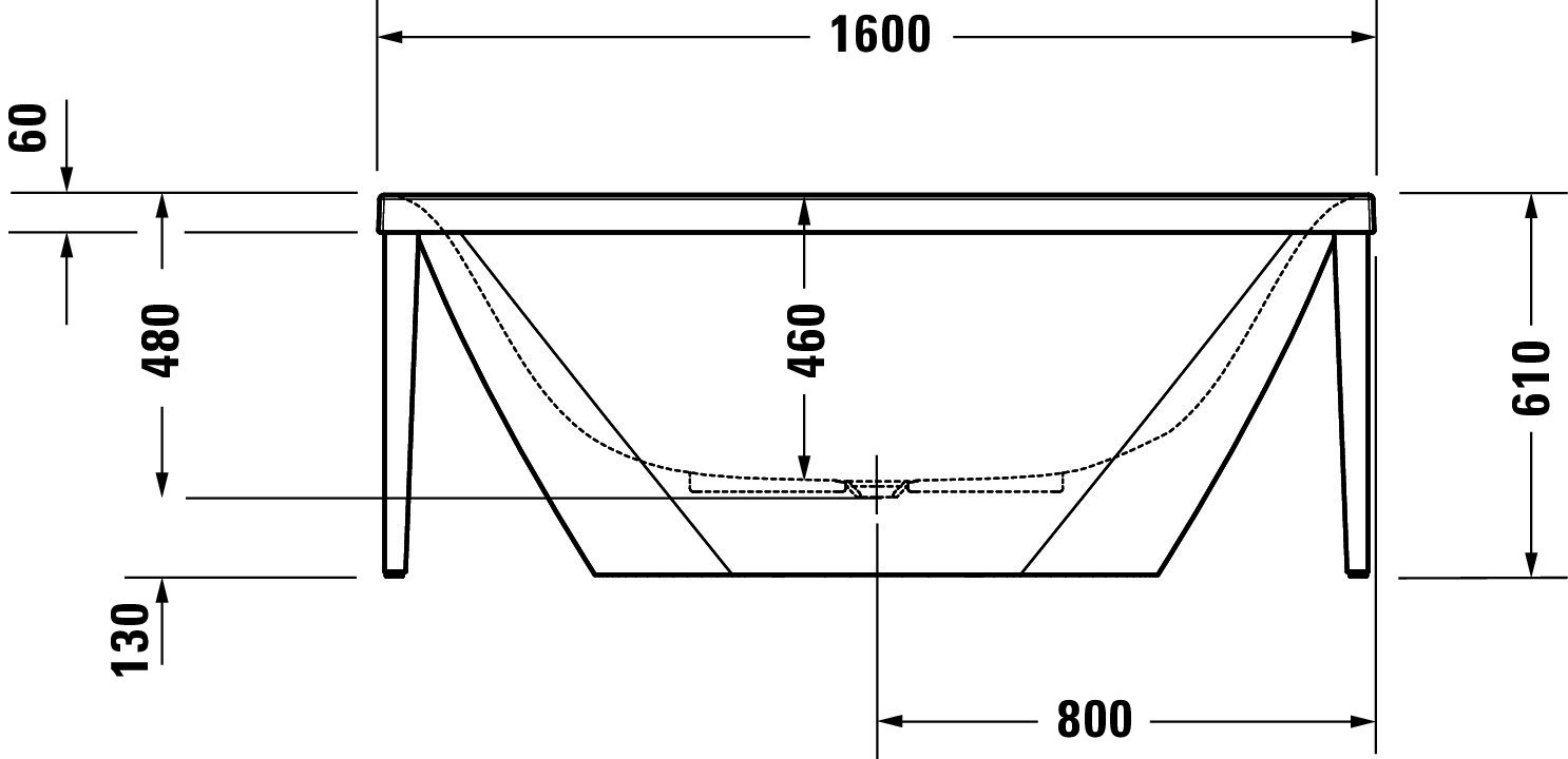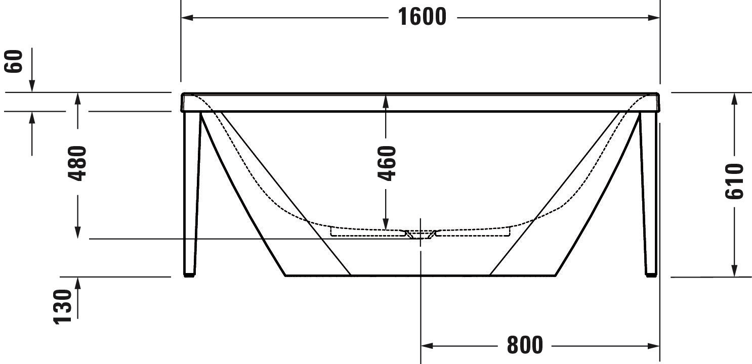 zentraler Ablauf, mit nahtloser Acrylverkleidung, Material Sanitäracryl, Nutzinhalt 140 l, Material Metallgestell Aluminium, mit Fußgestell, Ab- und Überlaufgarnitur