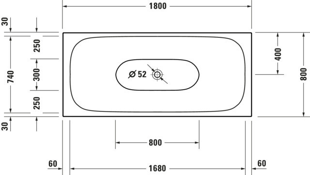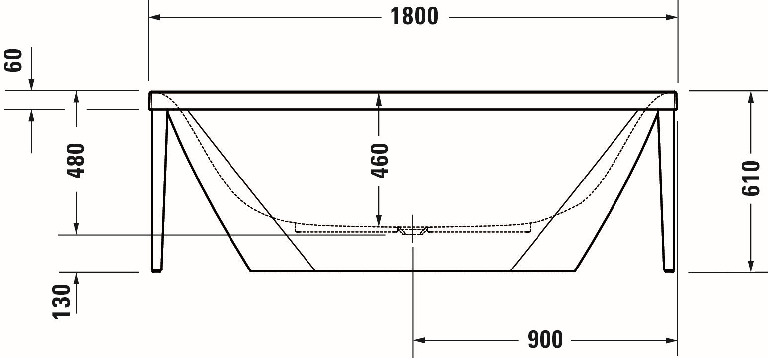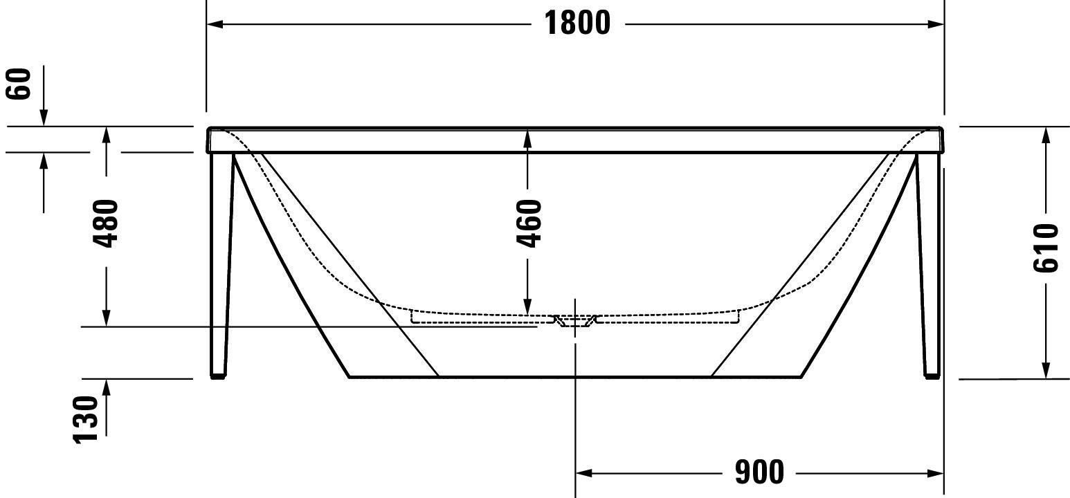 zentraler Ablauf, mit nahtloser Acrylverkleidung, Material Sanitäracryl, Nutzinhalt 165 l, Material Metallgestell Aluminium, mit Fußgestell, Ab- und Überlaufgarnitur