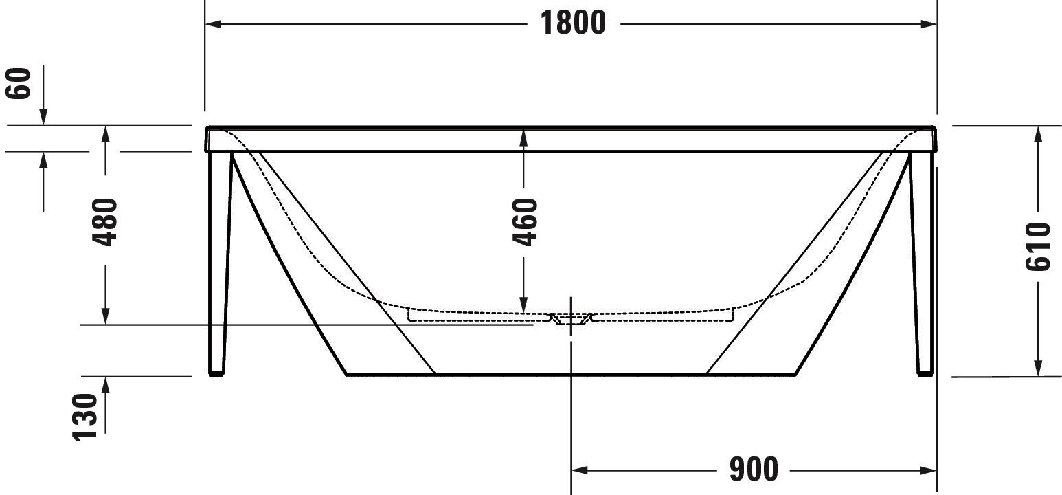 Duravit Rechteck-Badewanne XViu 180x80x46cm, freistehend, 2 Rückenschrägen, weiß, Metallgestell schwarz matt 700443000B20000