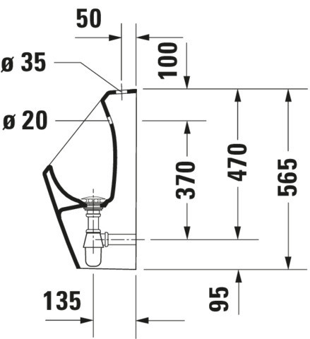 Anschlussmaß Wasseranschluss 1/2", Abgang waagerecht, mit verdeckten Abgang, Spülform Verdrängung, min. Spülwassermenge 1 l, mit Spüldüse, Geruchsverschluss, Zulauf-Set, Ablaufventil, Ø 32 mm Tassensiphon, Befestigungsmaterial, für Druckspüler mit einem Abstand 50 mm von Wand bis Mitte Spülrohr, nur in Verbindung mit regulierbaren Drückspülern ohne Belüftung