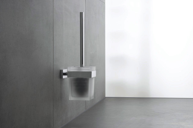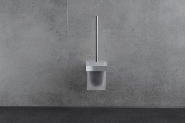 Duravit WC-Bürstengarnitur Karree 9,6 x 12,6 cm, Wandmontage, Glas weiß matt, Halter chrom