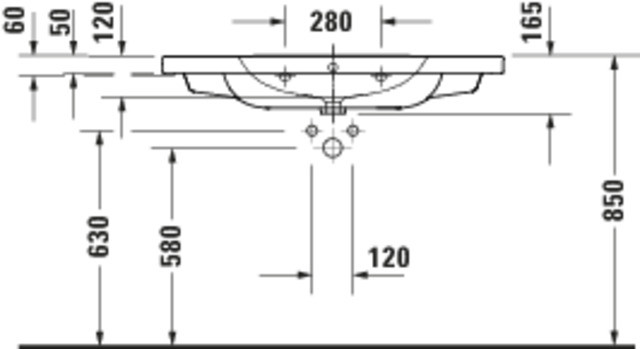 aus Sanitärkeramik, 480 x 1000 x 165 mm, mit Hahnlochbank, wandhängend