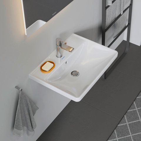 Duravit Waschtisch D-Neo 65 x 44 cm, mit Hahnloch, weiß WonderGliss, Überlauf, Hahnlochbank, weiß DU23666500001