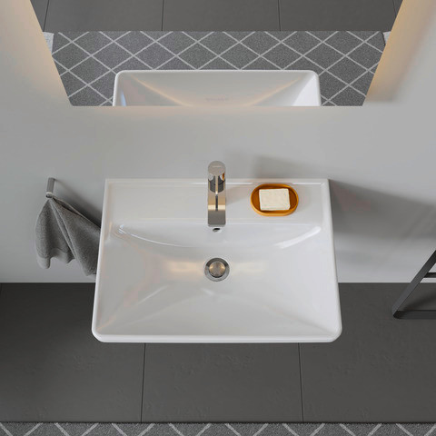 Duravit Waschtisch D-Neo 65 x 44 cm, ohne Hahnloch, weiß, Überlauf, Hahnlochbank, weiß DU2366650060