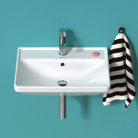Duravit Waschtisch D-Neo 60 x 44 cm, mit Hahnloch, weiß, Überlauf, Hahnlochbank, weiß