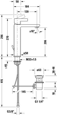 Duravit Waschtisch-Einhebelmischer L D-Neo mit Zugstangen-Ablaufgarnitur, Ausladung 139mm, chrom DUDE1030001010