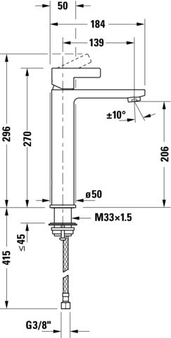 Duravit Waschtisch-Einhebelmischer L D-Neo ohne Zugstangen-Ablaufgarnitur, Ausladung 139mm, chrom DUDE1030002010