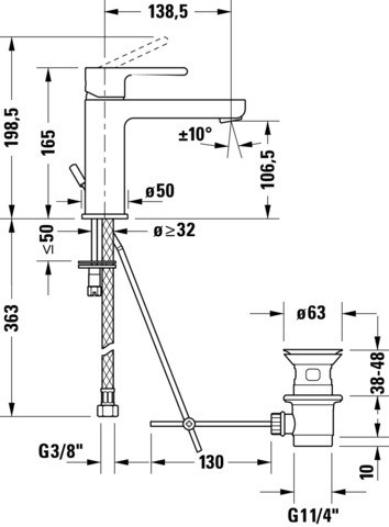 Duravit Waschtisch-Einhebelmischer S FreshStart und MinusFlow B.2 mit Zugstangen-Ablaufgarnitur, Ausladung 139mm, chrom DUB21023001010