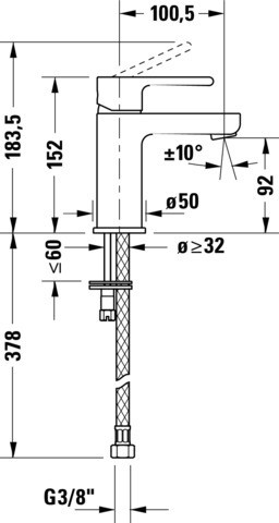 Keramikmischsystem, Standmontage, Ausladung 101 mm, flexible Anschlussschläuche 3/8", Normalstrahl, Temperaturbegrenzung einstellbar, Geeignet für Durchlauferhitzer, Anzahl Griffe 1