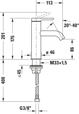 Duravit Waschtisch-Einhebelmischer S FreshStart und MinusFlow C.1 Ausladung 113mm, ohne Zugstangen-Ablaufgarnitur, chrom DUC11023002010
