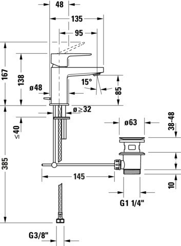 Standmontage, Höhe 138 mm, Keramikmischsystem, Strahlformer mit EasyClean, flexible Anschlussschläuche 3/8", Normalstrahl