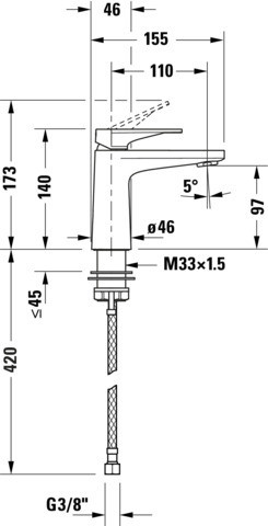 Duravit Waschtisch-Einhebelmischer Tulum S FreshStart Ausladung 110mm, ohne Zugstangen-Ablaufgarnitur, chrom