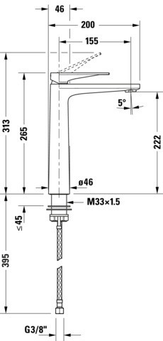 Duravit Waschtisch-Einhebelmischer Tulum XL Ausladung 155mm, ohne Zugstangen-Ablaufgarnitur, chrom DUTU1040002010