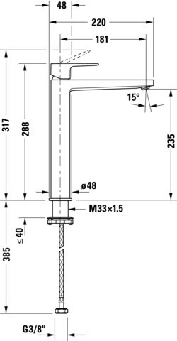 Duravit Waschtisch-Einhebelmischer XL Manhattan Ausladung 181mm, ohne Zugstangen-Ablaufgarnitur, chrom DUMH1040002010