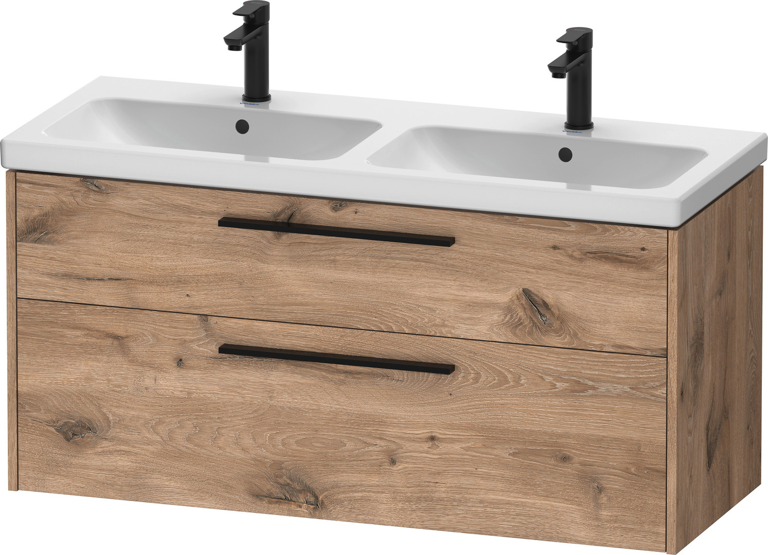 Duravit Waschtisch-Unterschrank D-Code 118,4 x 55,5 x 46 cm, 2 Schubkästen, Schürze, Eiche Marmorie, Griff diamantschwarz