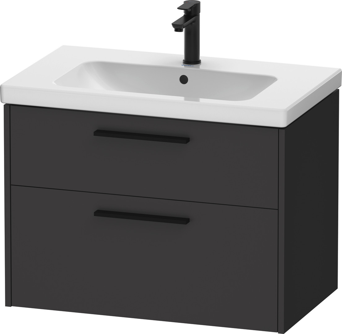 Duravit Waschtisch-Unterschrank D-Code 78,4x55,5x46 cm, 2 Schubkästen, Schürze, Graphit Matt, Griff diamantschwarz