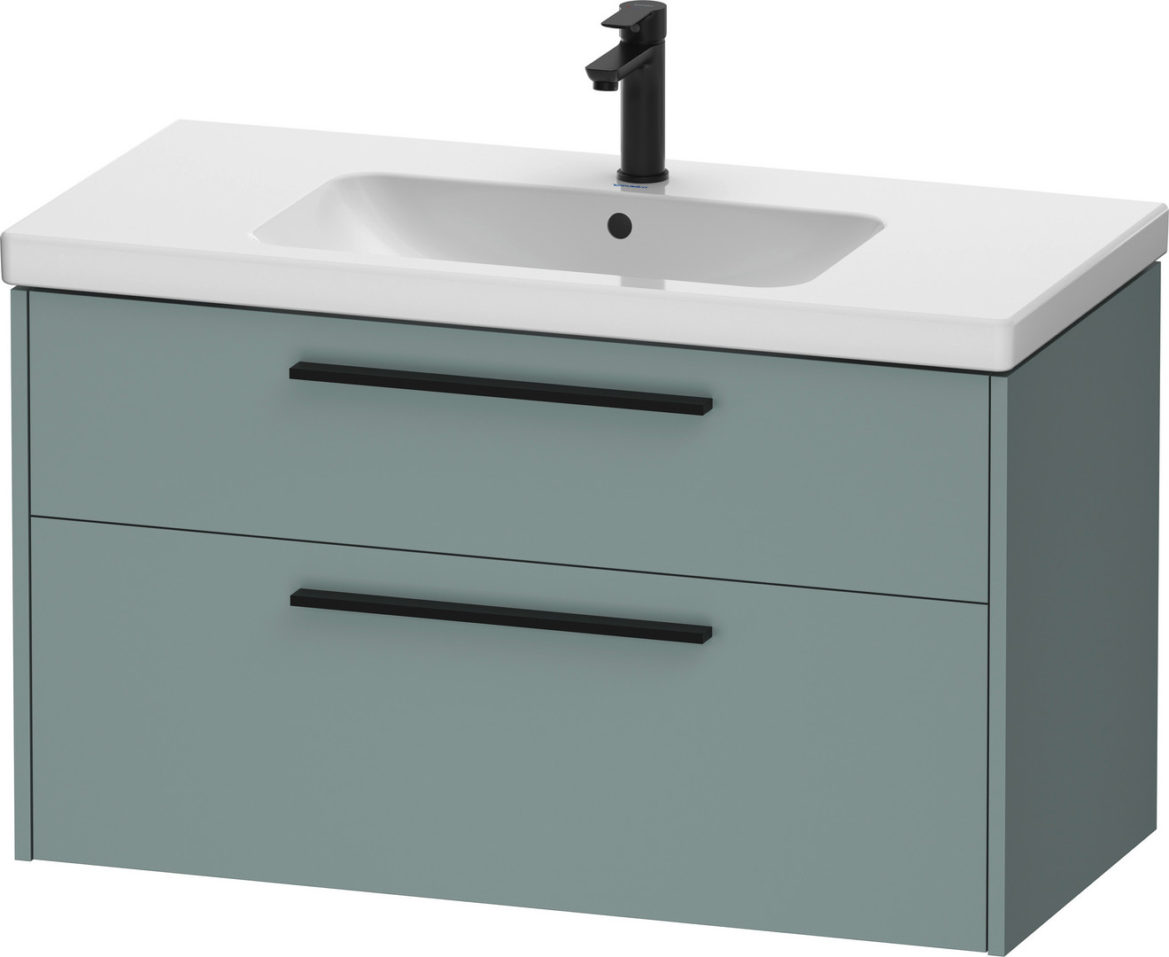 Duravit Waschtisch-Unterschrank D-Code 98,4x55,5x46 cm, 2 Schubkästen, Schürze, Fjordgrün Matt, Griff diamantschwarz
