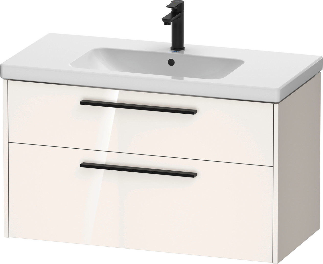 Duravit Waschtisch-Unterschrank D-Code 98,4x55,5x46 cm, 2 Schubkästen, Schürze, Weiß Hochglanz, Griff diamantschwarz