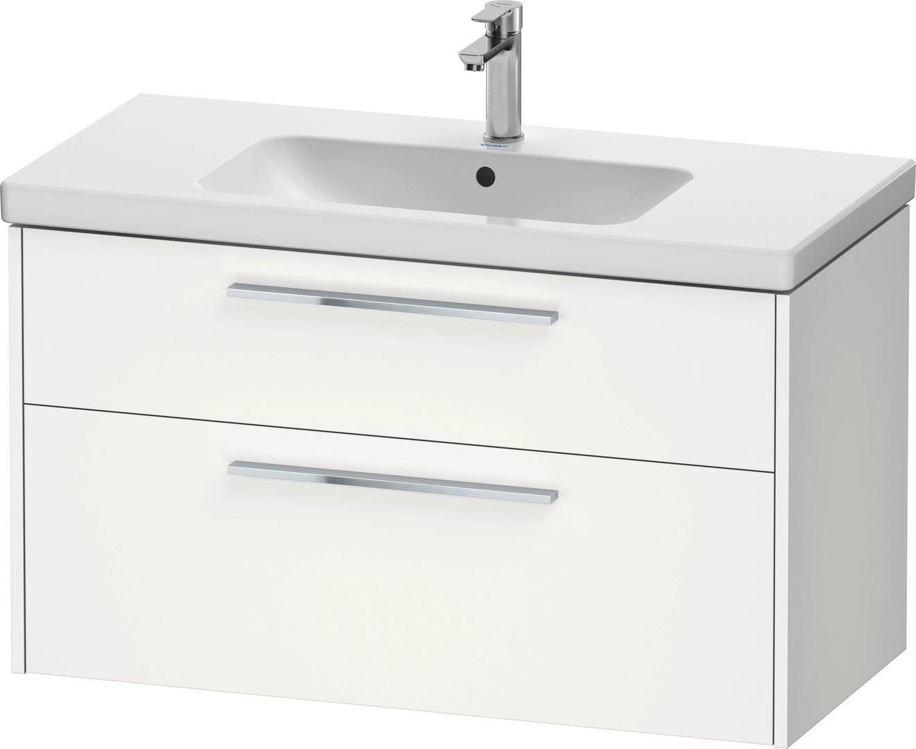 Duravit Waschtisch-Unterschrank D-Code 98,4x55,5x46 cm, 2 Schubkästen, Schürze, Weiß Matt, Griff chrom