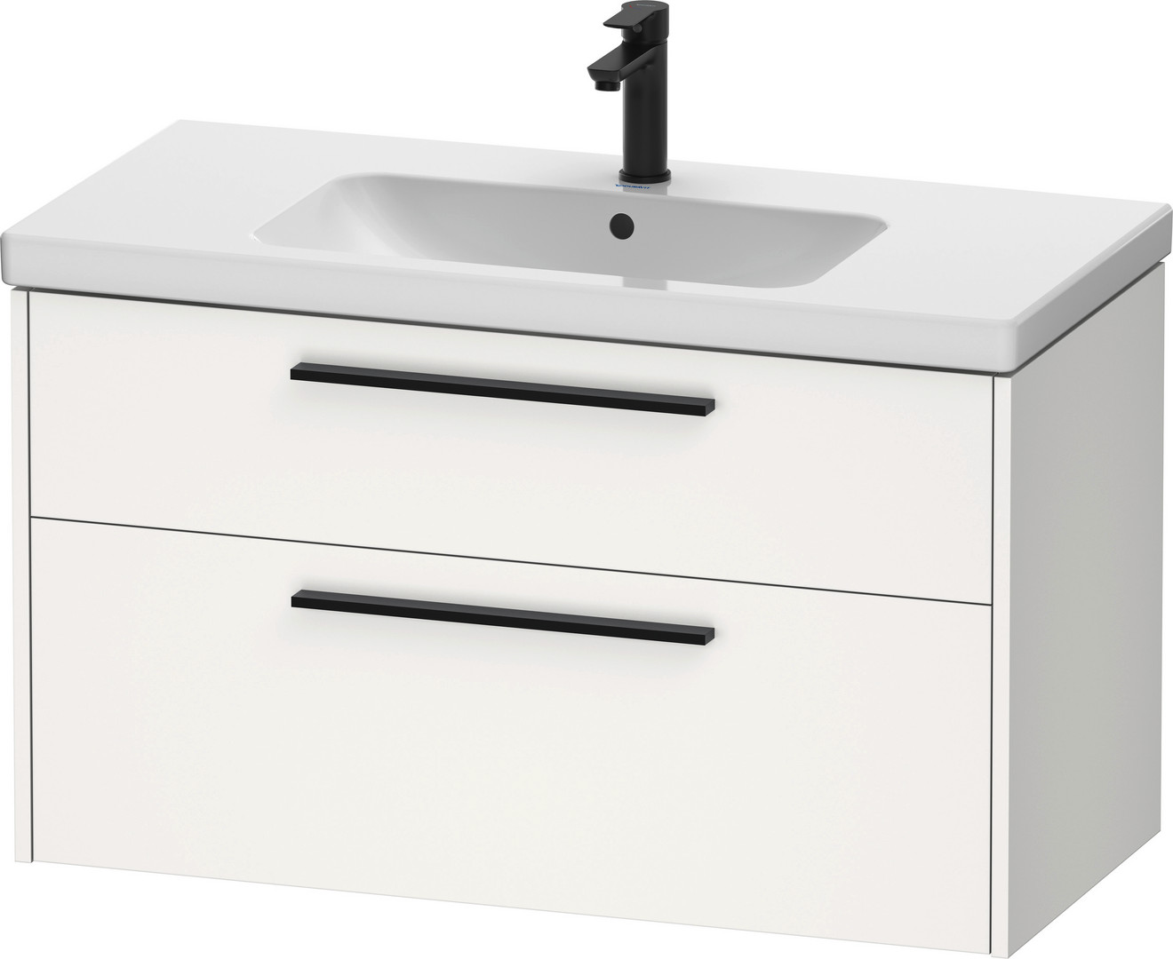 Duravit Waschtisch-Unterschrank D-Code 98,4x55,5x46 cm, 2 Schubkästen, Schürze, Weiß Matt, Griff diamantschwarz