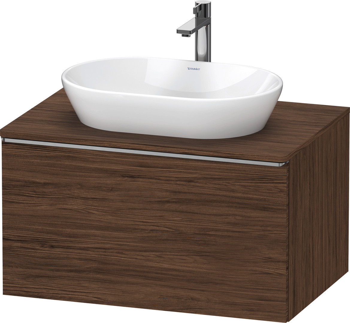 Duravit Waschtisch-Unterschrank D-Neo 80 x 55 cm, Edelstahl gebürstet/Nussbaum Dunkel, 1 Auszug, 1 Konsolenplatte, wandhängend