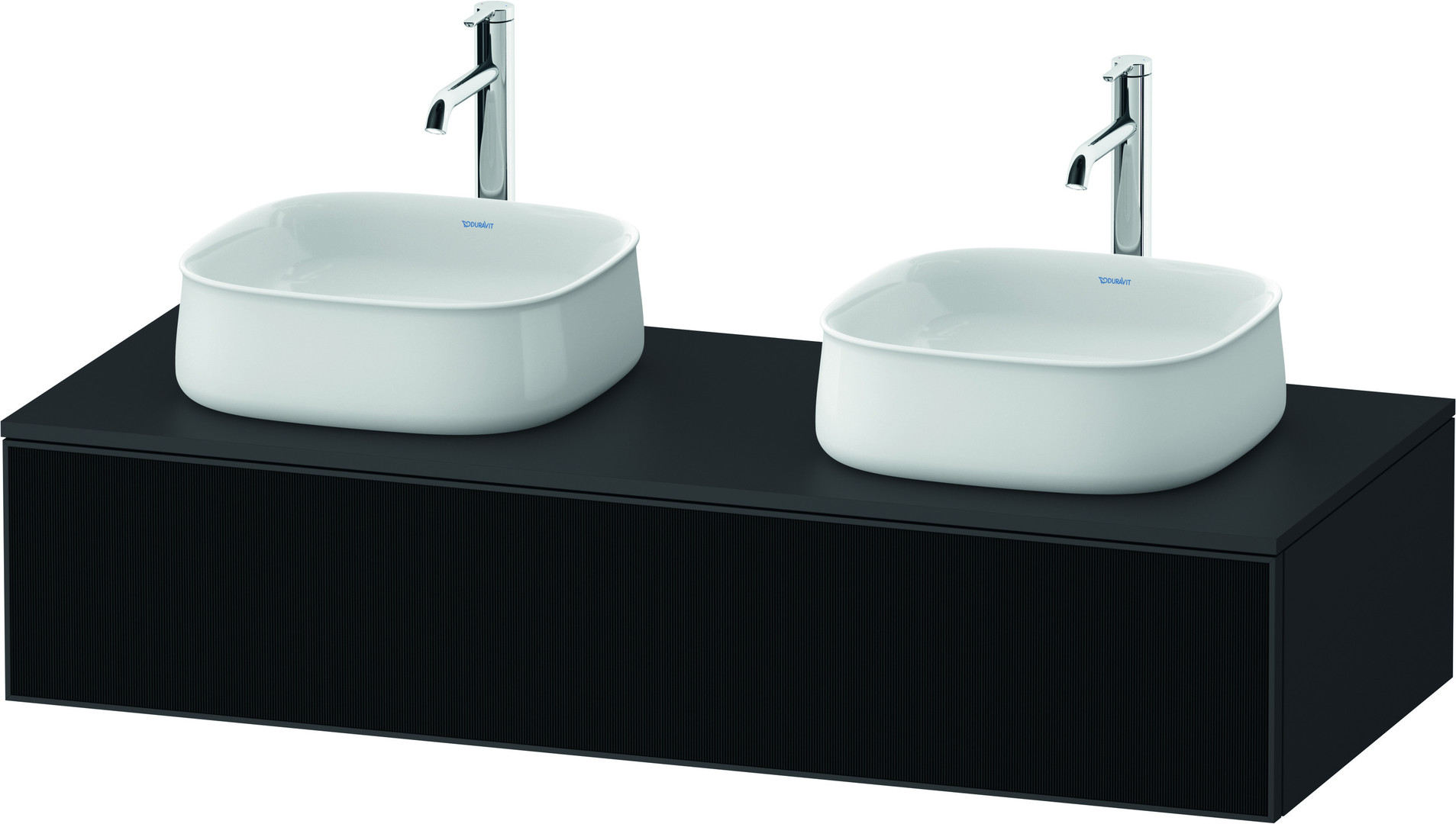 Duravit Waschtisch-Unterschrank Zencha 130x55cm, Becken beidseitig, Glas schwarz Linienstruktur/graphit supermatt, Nussbaum mitte