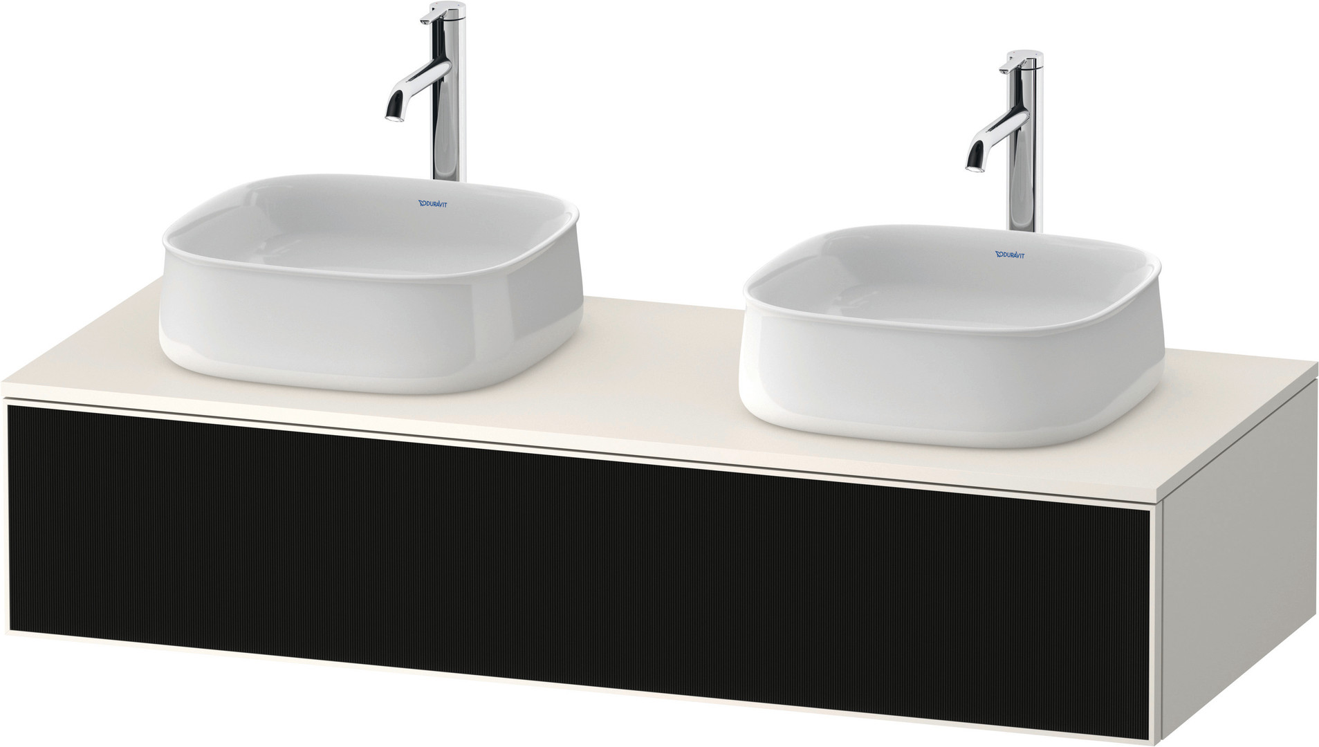 Duravit Waschtisch-Unterschrank Zencha 130x55cm, Becken beidseitig, Glas schwarz Linienstruktur/weiß supermatt, Eiche mitte