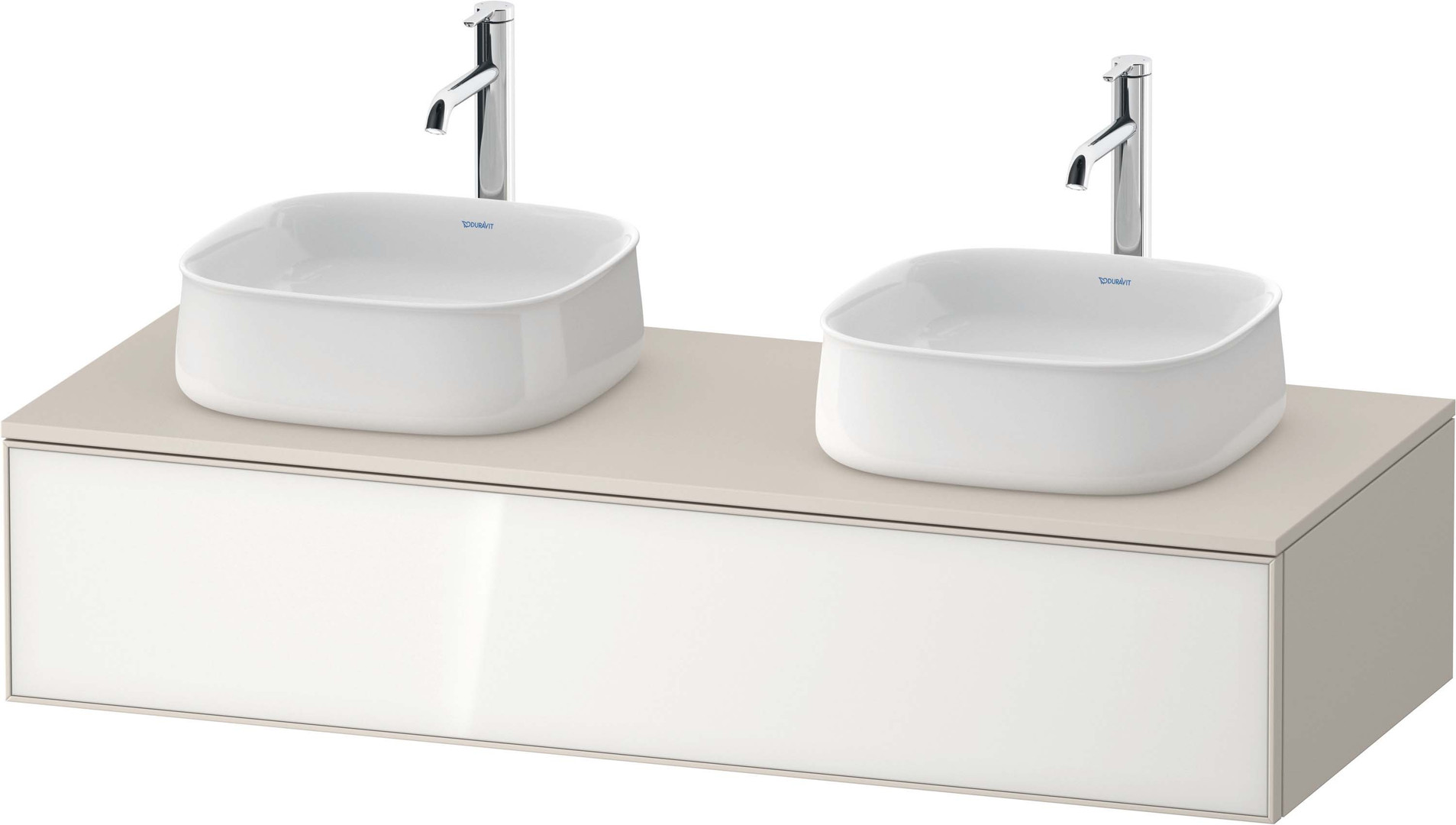 Duravit Waschtisch-Unterschrank Zencha 130x55cm, Becken beidseitig, Glas weiß/taupe supermatt, Nussbaum mitte