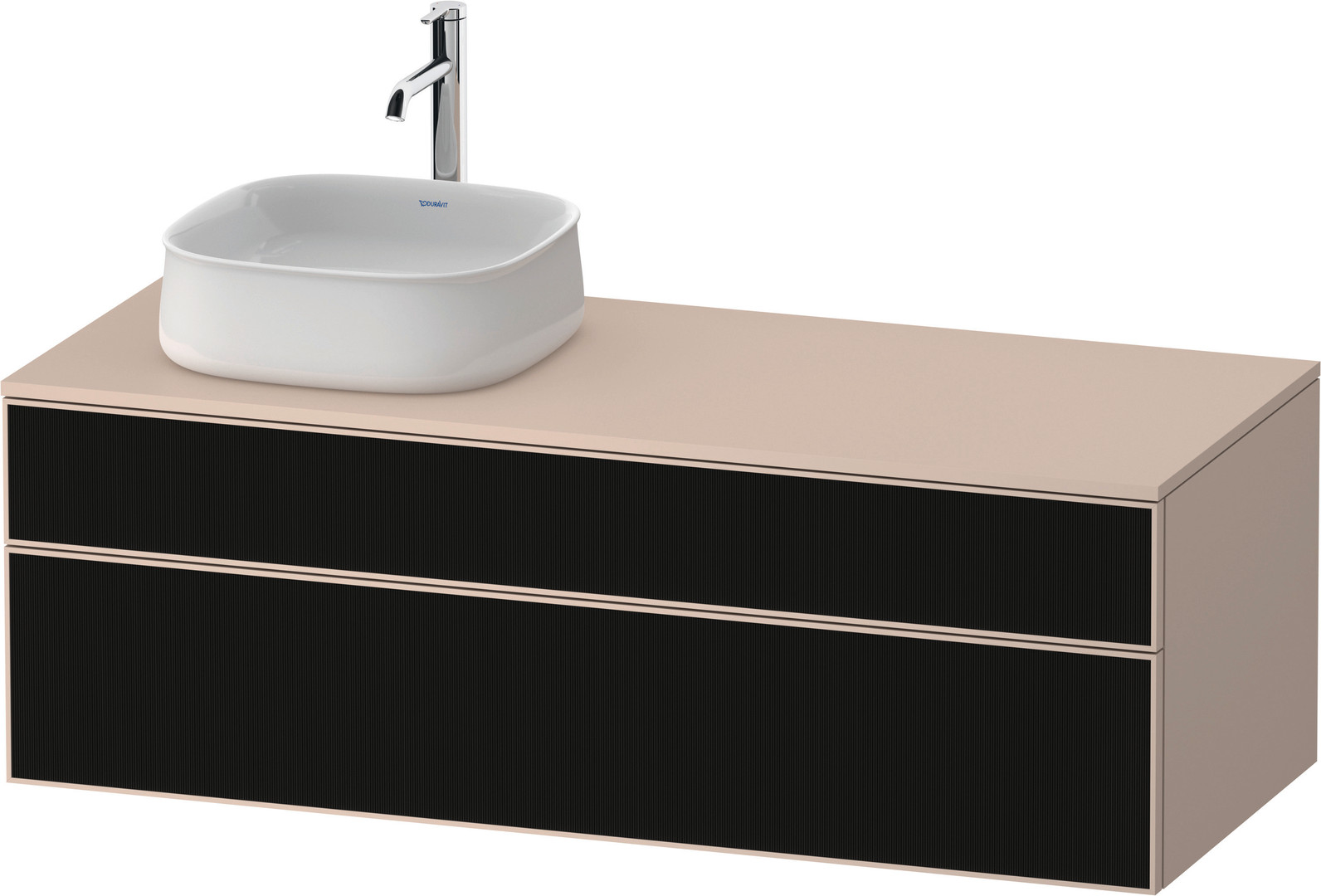 Duravit Waschtisch-Unterschrank Zencha 130x55cm, Becken links, Glas schwarz Linienstruktur/taupe supermatt, Eiche mitte
