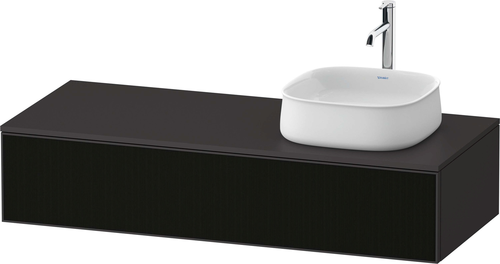 Duravit Waschtisch-Unterschrank Zencha 130x55cm, Becken rechts, Glas schwarz Linienstruktur/graphit supermatt, Nussbaum mitte