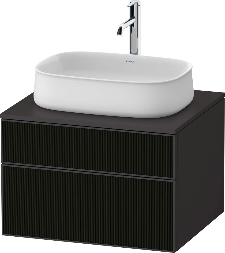 Duravit Waschtisch-Unterschrank Zencha 65x55cm, 1 Schubkasten, Glas schwarz Linienstruktur/graphit supermatt, Eiche mitte