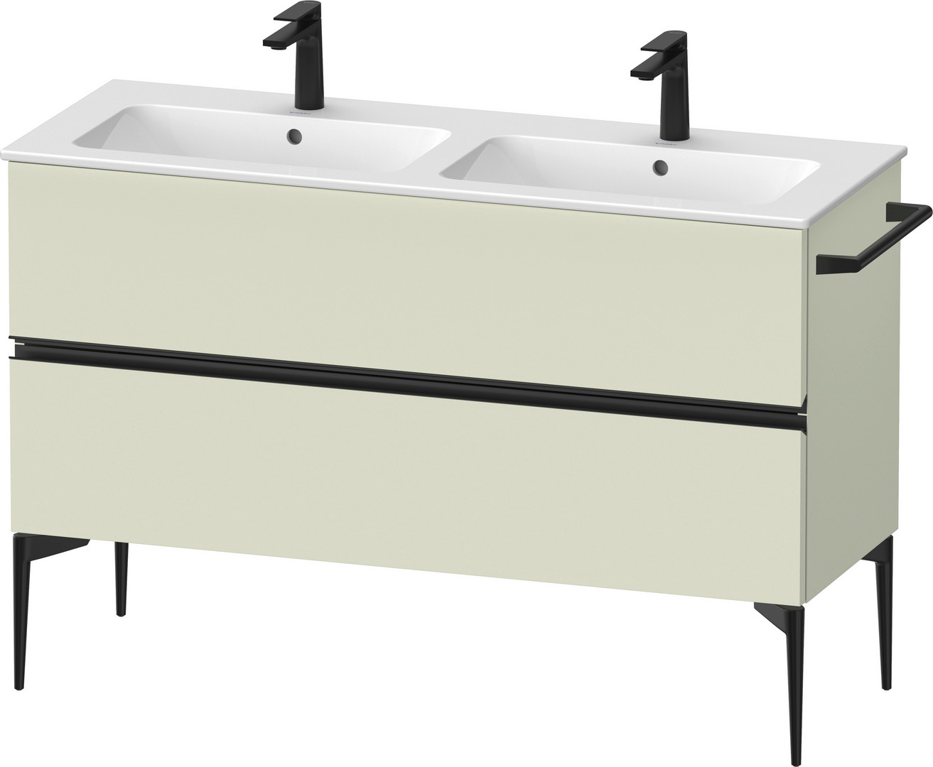 Duravit Waschtisch-Unterschrank bodenstehend Sivida 128 x 59,1 x 47,7 cm, 2 Schubkästen, Blassgrün Matt, Griff diamantschwarz